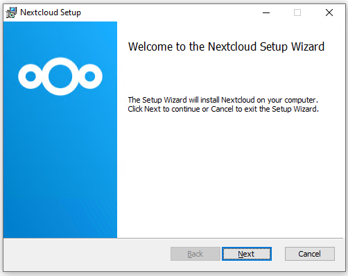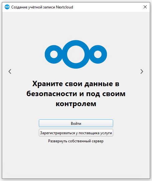 Мастер установки позволяет пошагово установить настольный клиент Nextcloud.
