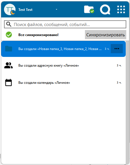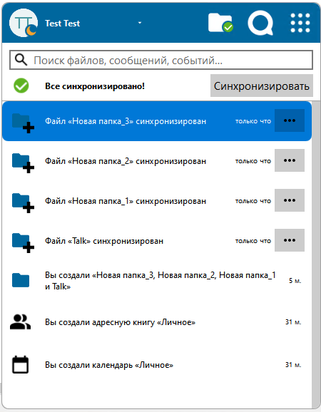 Затем запустится процесс синхронизации. Отслеживайте прогресс синхронизации, открыв главное меню клиента через значок в системном трее.