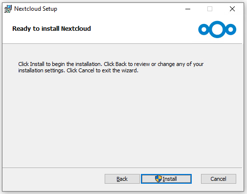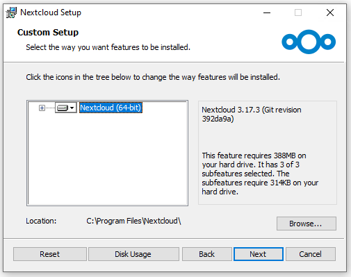 Установщик Nextcloud .msi запоминает эти параметры, поэтому не нужно указывать их повторно при обновлении.
