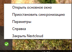 Настольный клиент Nextcloud работает в фоновом режиме и отображается в виде значка в системном трее (Windows, KDE), меню (macOS) или области уведомлений (Линукс). Значки показывают текущее состояние клиента.