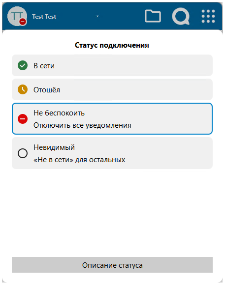 Вы также можете установить собственное сообщение о статусе. Нажмите «Описание статуса» и добавьте произвольное сообщение в текстовом поле или выберите одно из предустановленных сообщений о состоянии. Можно установить собственный смайлик, если нажать на кнопку с эмодзи рядом с полем ввода текста.