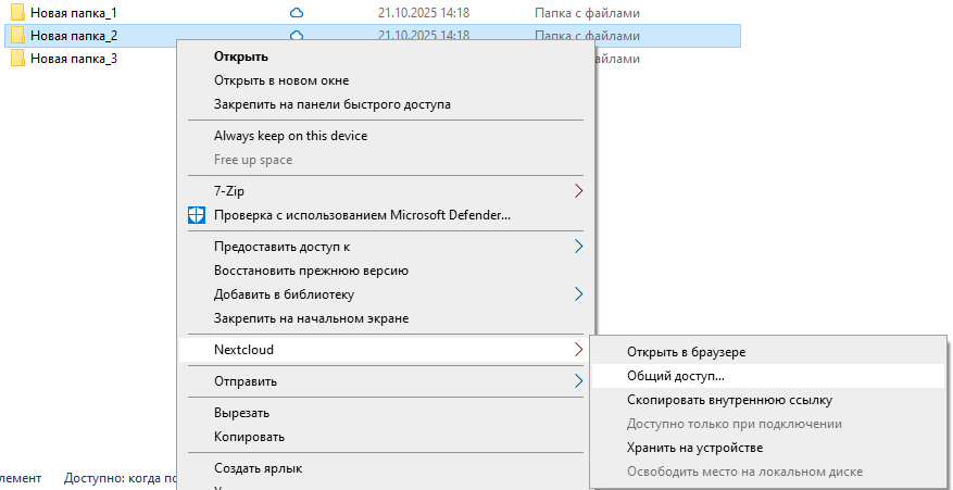 - Доступность. Позволяет выбирать, хранить ли файл или папку на локальном диске или только в облачном хранилище.