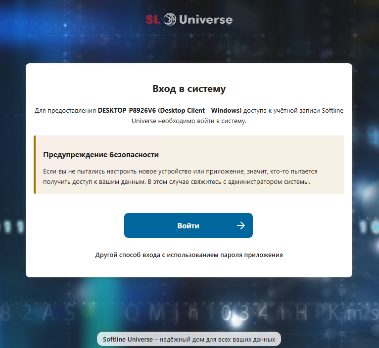 После нажатия кнопки «Next», будет выполнено перенаправление в веб-браузер. Браузер должен автоматически открыться на странице авторизации. Нажмите «Войти».